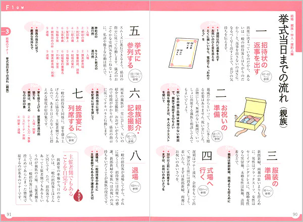 伝統的なしきたりや行事は、一生のうちに何度もは経験できないもの。しかも失敗できないことばかりなので、全体の流れをつかんでから個別の進行を覚えたいもの。本書はそれが、ひとめでわかるつくりです。