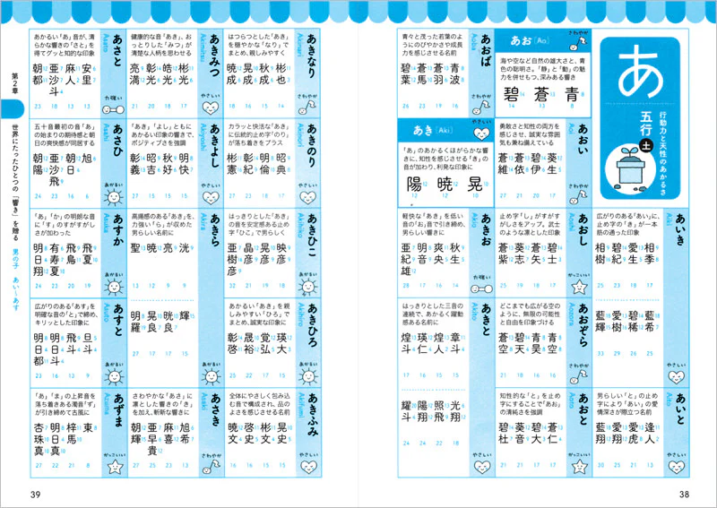名前は書き記すより呼ばれることの方がはるかに多く、印象を大きく左右します。本書では、ひとつひとつの響きが持つ特徴を解説し、「かっこいい」「かわいい」「あかるい」など人気のイメージごとにアイコンでわかりやすく分類しています。そのほかにも「漢字」「イメージ」「画数」から、世界にたったひとつのわが子の名前を考えるためのヒントをたくさん用意しています。本書といっしょに、パパとママの愛情がたっぷり詰まった名前を考えてください。