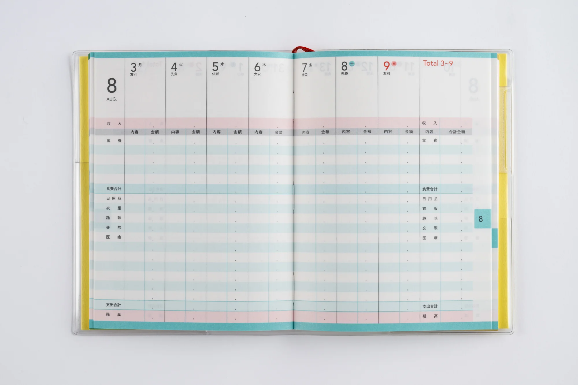 カラフル&かわいい色づかいで、開くたびに気持ちがあがります。コンパクトサイズなので手帳がわりに持ち歩いても◎。1日ごと・週ごとの収支を管理するのに便利な週計タイプです。ペンホルダー付き。