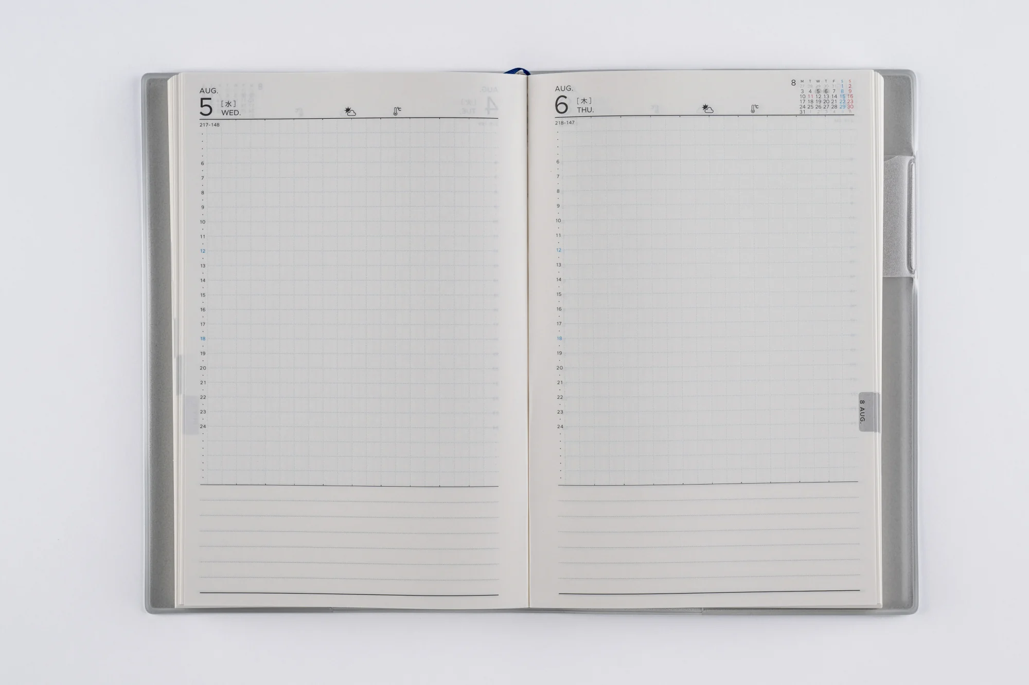 文章や図、イラストなど自由に書き込みやすい方眼ページ。時間軸付き。