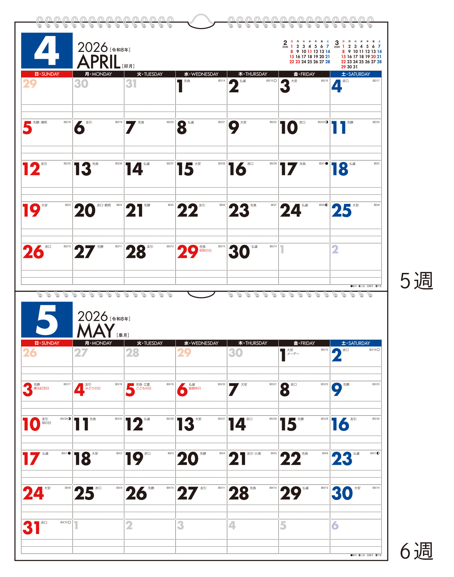 エコで地球にやさしい、シンプルな壁掛タイプのカレンダー[B4サイズ×2面]