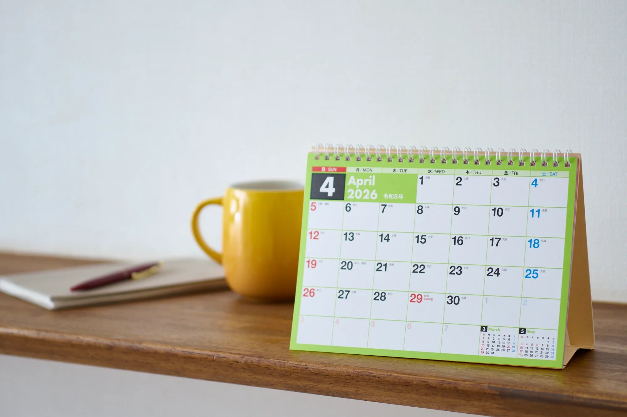 エコで地球にやさしい、シンプルな卓上タイプのカレンダー[A5サイズ]