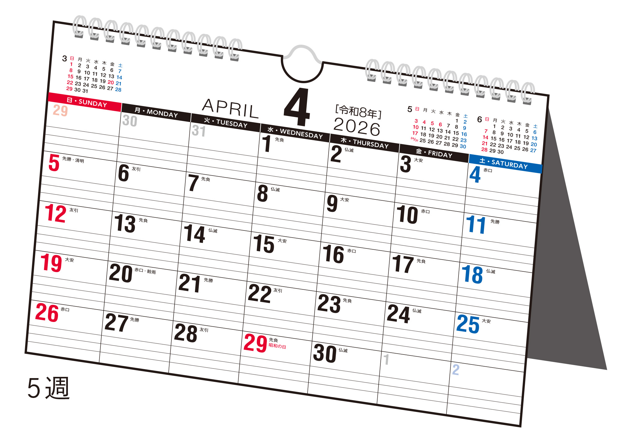 エコで地球にやさしい、シンプルな壁掛・卓上兼用タイプのカレンダー[B5サイズ]